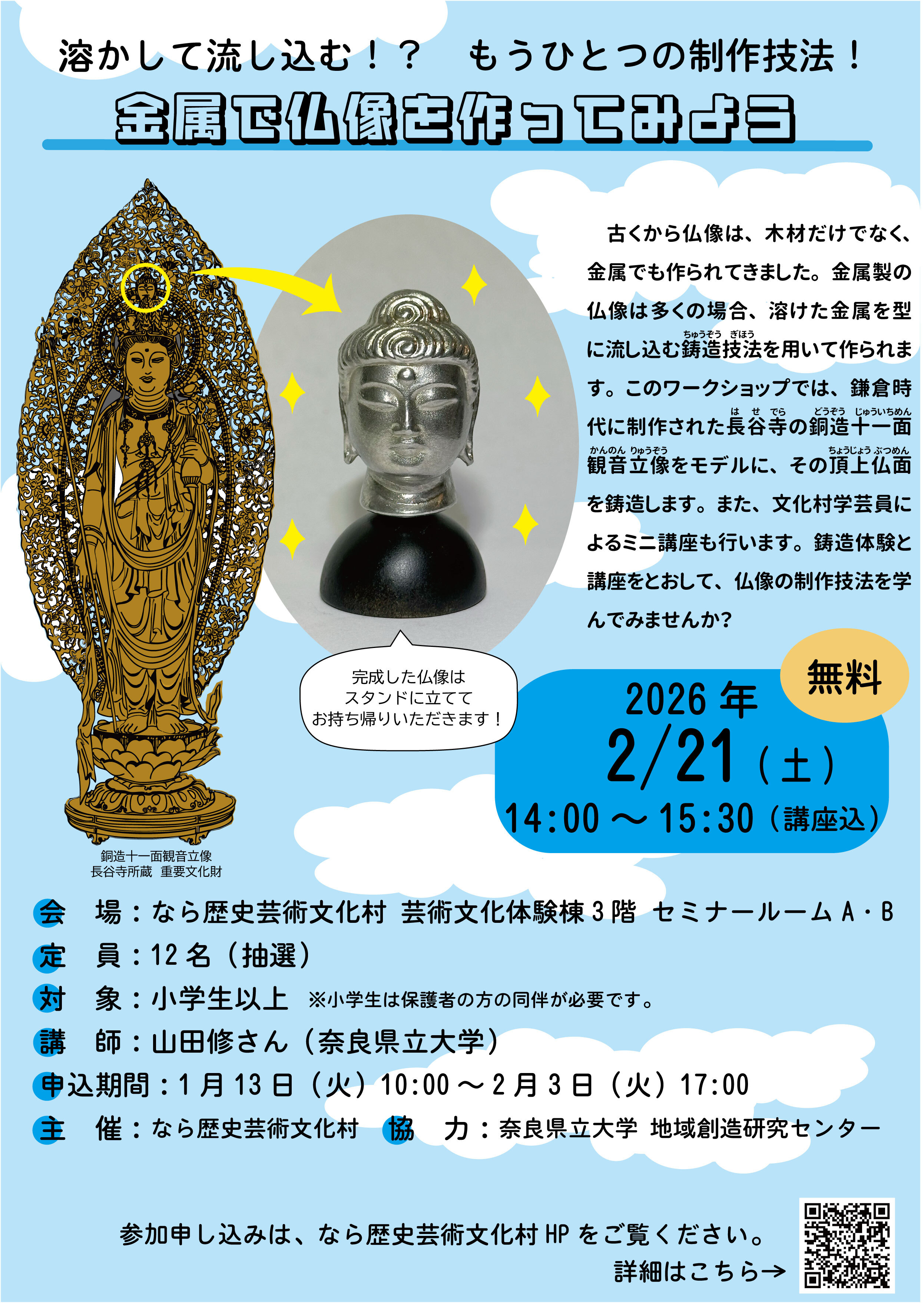 【仏像制作ワークショップ】溶かして流し込む!?もうひとつの制作技法!金属で仏像を作ってみよう