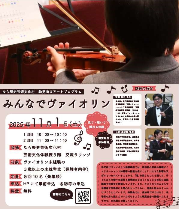 対象:ヴァイオリン未経験の3歳以上の未就学児(保護者同伴) 各回10名(先着順)